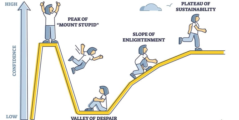 Hace alusión a que, cuanto menos sabemos, más creemos saber. Se trata de un sesgo cognitivo según el cual las personas con menos habilidades, capacidades y conocimientos tienden a sobreestimarlos. Como resultado, suelen convertirse en ultracrepidianos: personas que opinan sobre temas sin tener verdadero conocimiento.